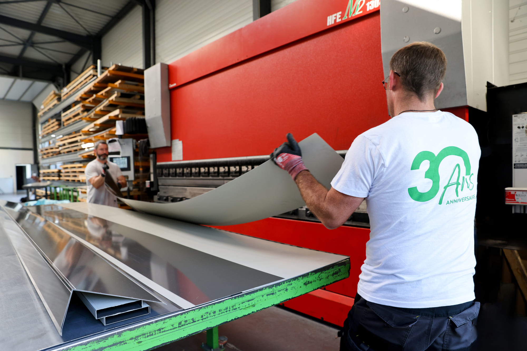 Doté de machines performantes (presse plieuse 4m, cisaille guillotine) et animé par 5 opérateurs expérimentés, cet atelier nous permet de livrer rapidement des pièces précises, dans près de 30 coloris disponibles en stock.